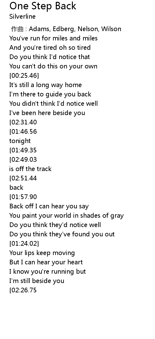 | [03:02.85][02:51.44][01:54.34][01:42.89][00:55.98][00:44.27] | It' s only one step back |