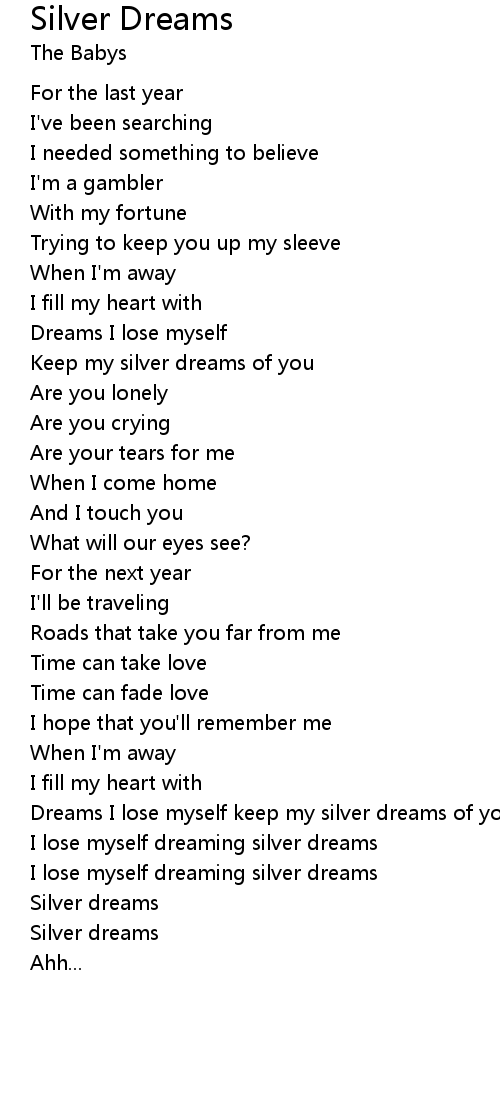 Dreams I lose myself keep my silver dreams of you |