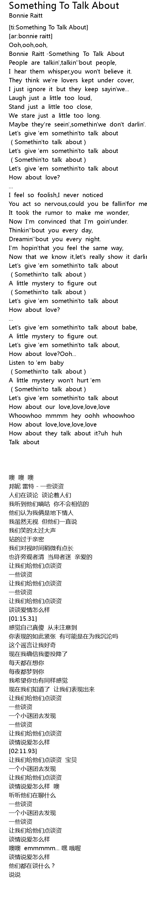 | [00:13.51] | Bonnie Raitt -Something To Talk About |