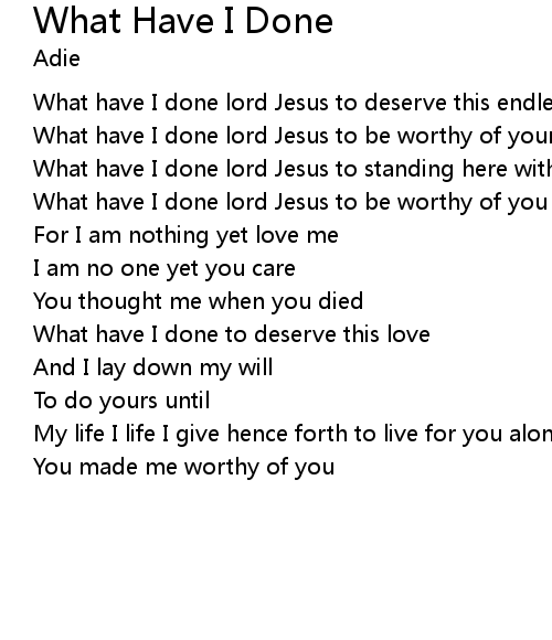 | What have I done lord Jesus to be worthy of your grace | |