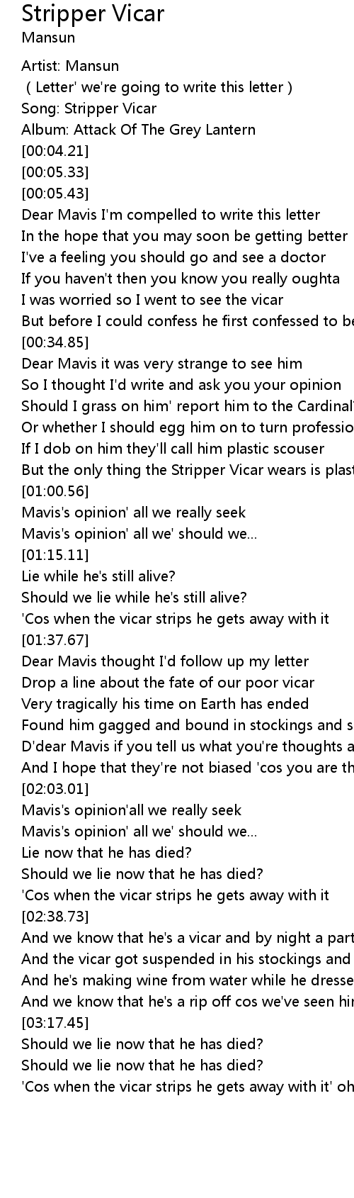 | [00:02.06] | Song: Stripper Vicar |