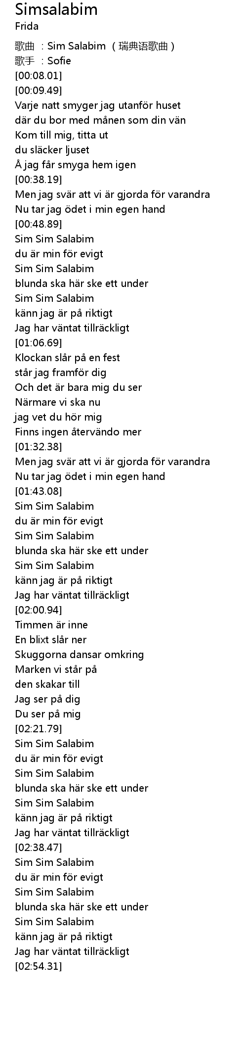 | [00:00.90] | 歌曲 :Sim Salabim (瑞典语歌曲) |