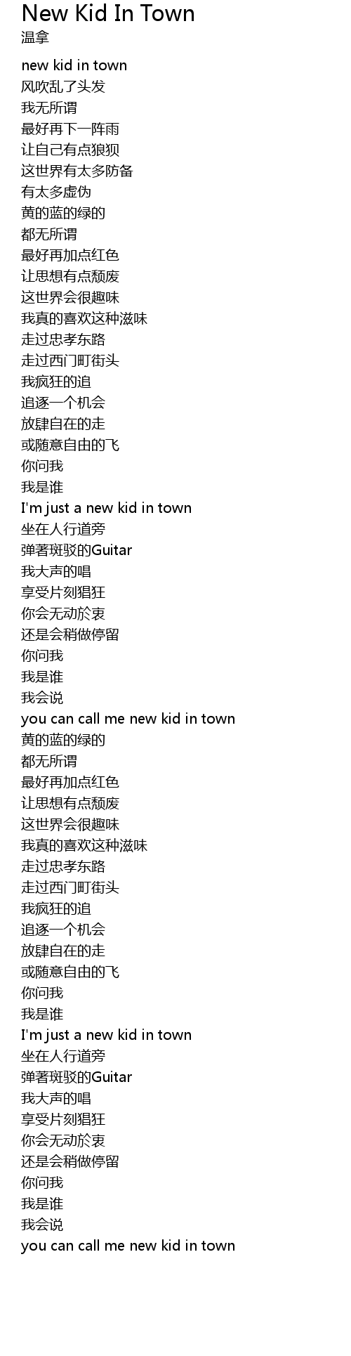 | [02:47] | I' m just a new kid in town |
