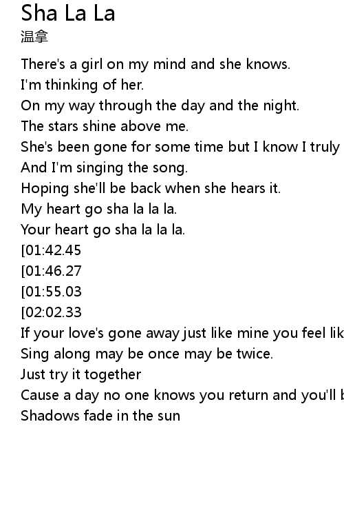 | [00:36.01] | My heart go sha la la la. |