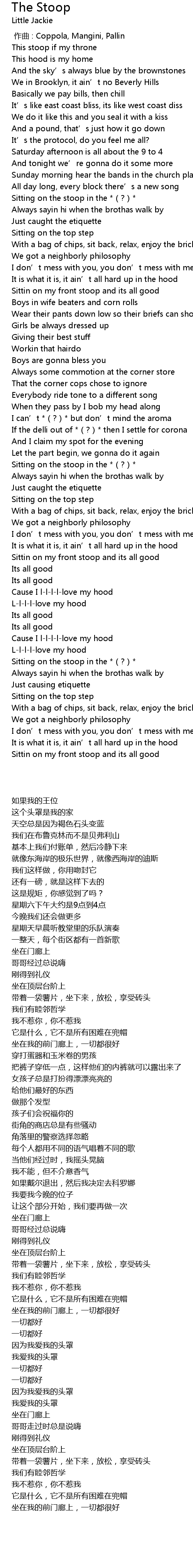 | [00:59.51] | Sittin on my front stoop and its all good |