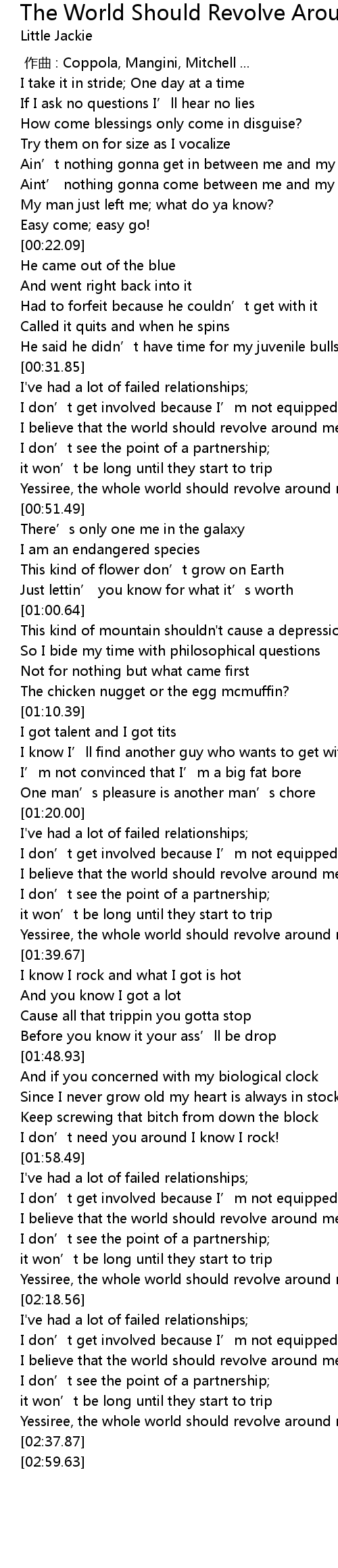 | [01:34.57] | Yessiree, the whole world should revolve around me! |