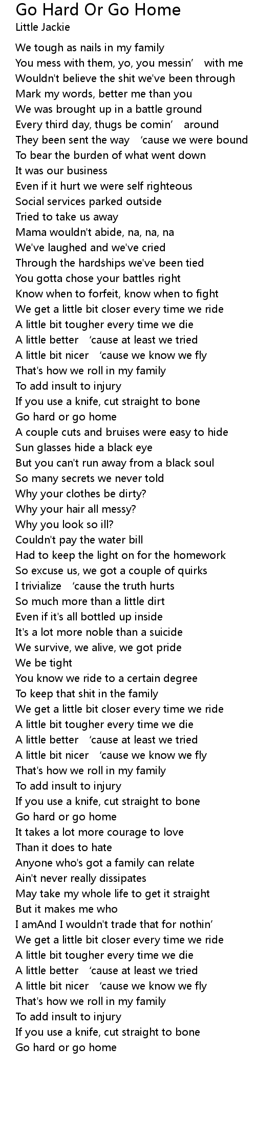 | Song | Go Hard Or Go Home |