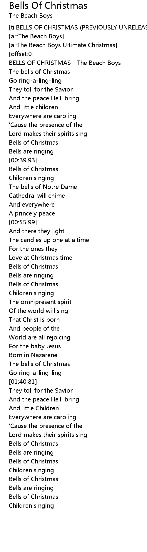 BELLS OF CHRISTMAS - The Beach Boys |
