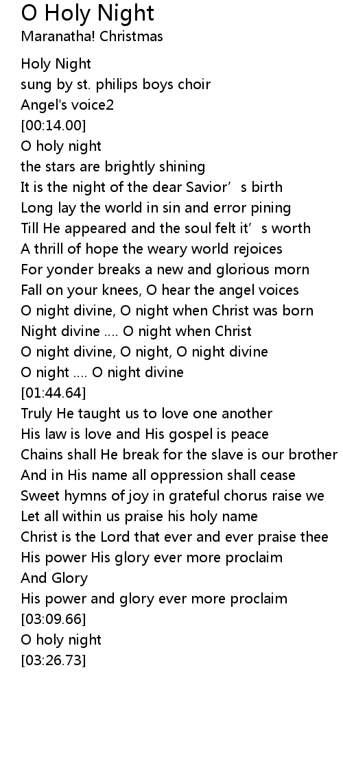 | [00:23.44] | It is the night of the dear Savior' s birth |