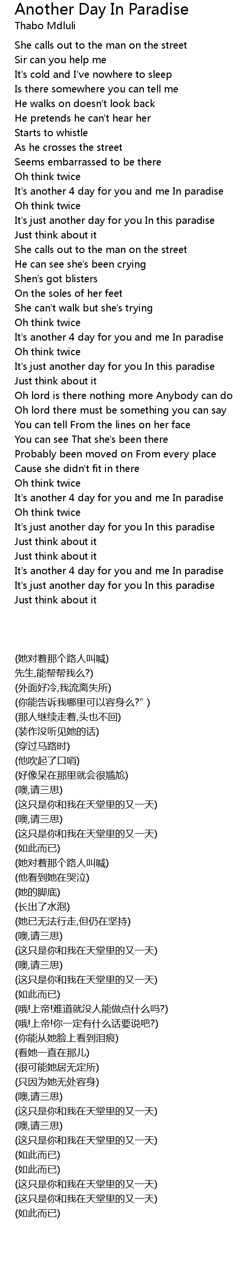 It's just another day for you In this paradise |