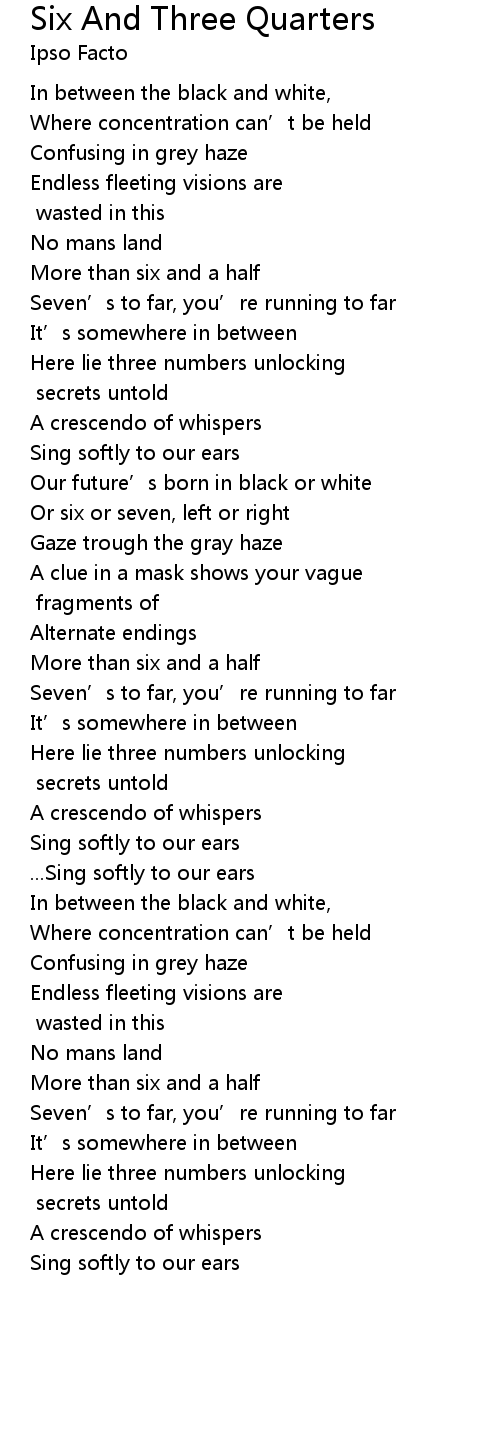 | Song | Six And Three Quarters |