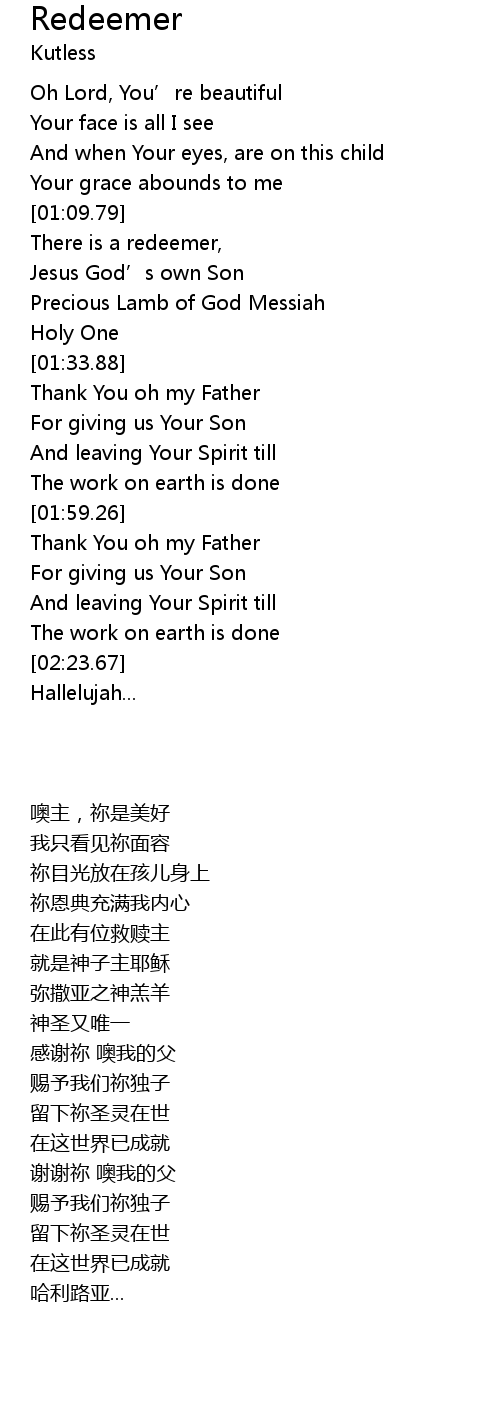 | [01:23.21] | Precious Lamb of God Messiah |