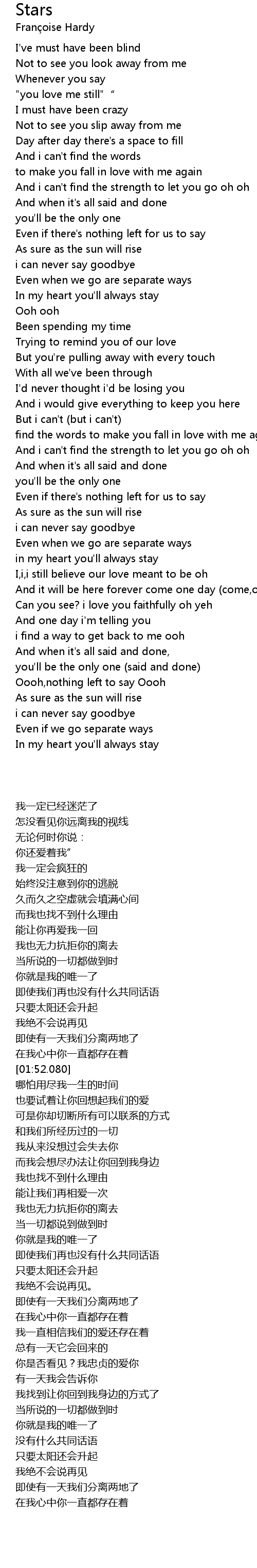 | [01:19.510] | Even if there' s nothing left for us to say |