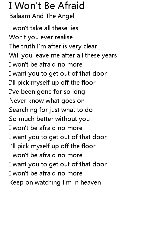 I won't be afraid no more |
