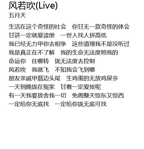 | [01:32.43] | 风若吹 我就飞 不知我会飞到哪 |
