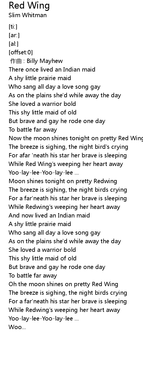 | [00:38.63] | While Red Wing's weeping her heart away |