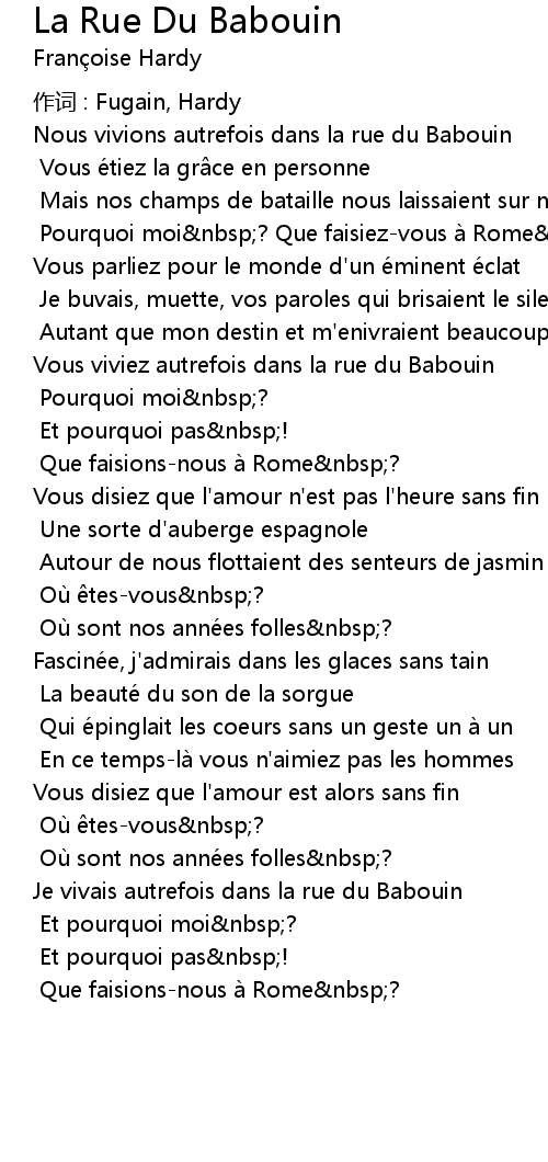 | Song | La Rue Du Babouin |