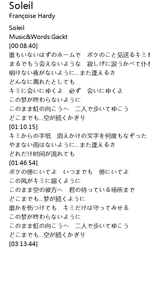 | [03:01.19] | このまま虹の向こうへ 二人で歩いてゆこう |