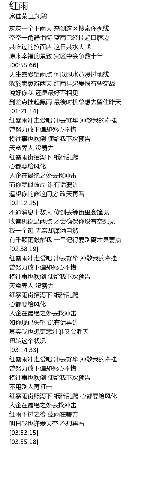 | [02:53.49] | 红暴雨街招泻下 纸碎乱爬 |