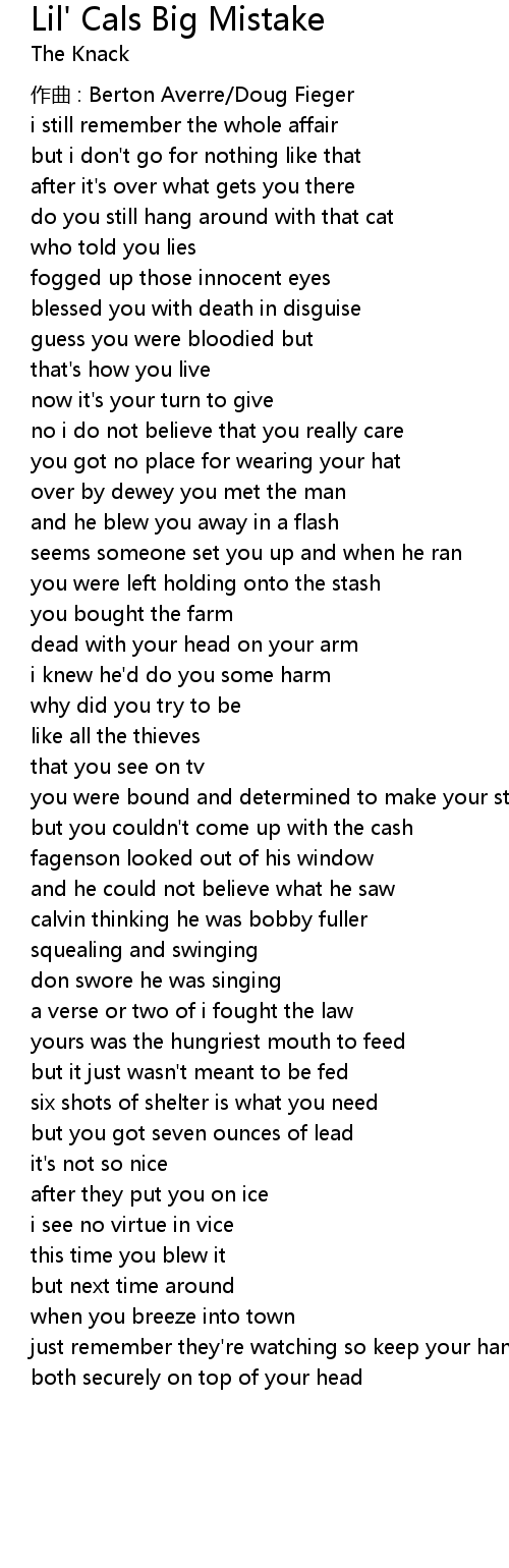 | Song | Lil' Cals Big Mistake |