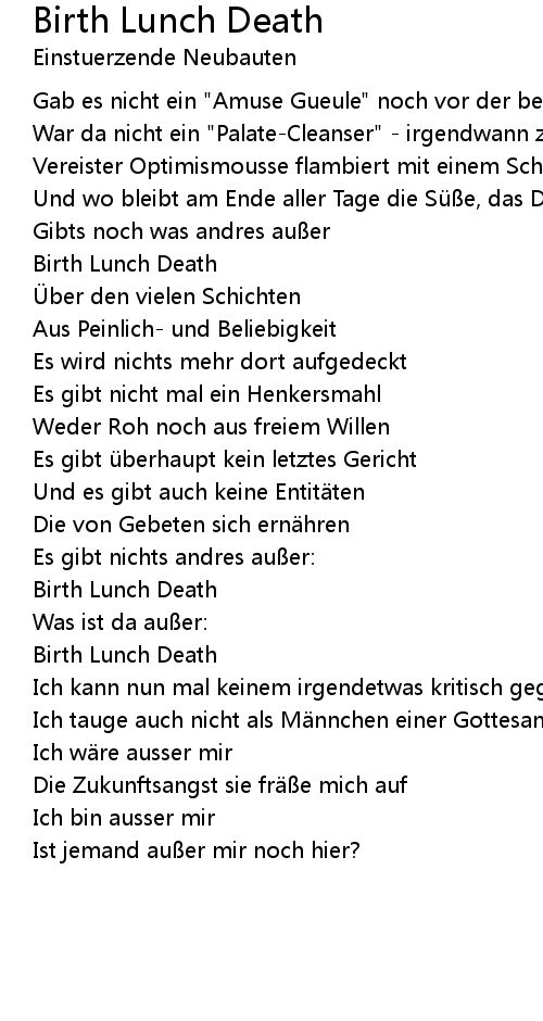 | Und wo bleibt am Ende aller Tage die Sü e, das Dessert? | |