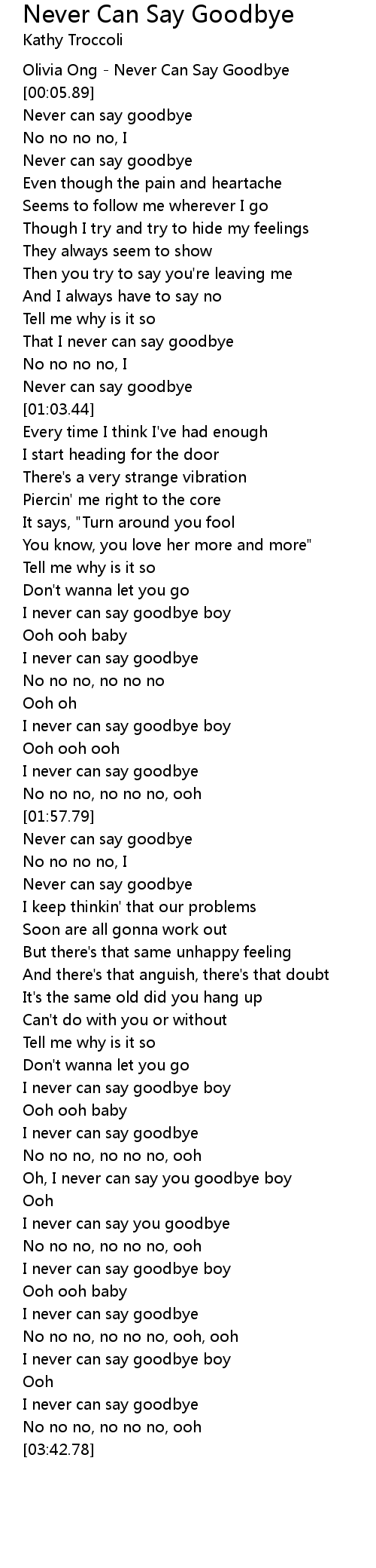 I never can say goodbye |