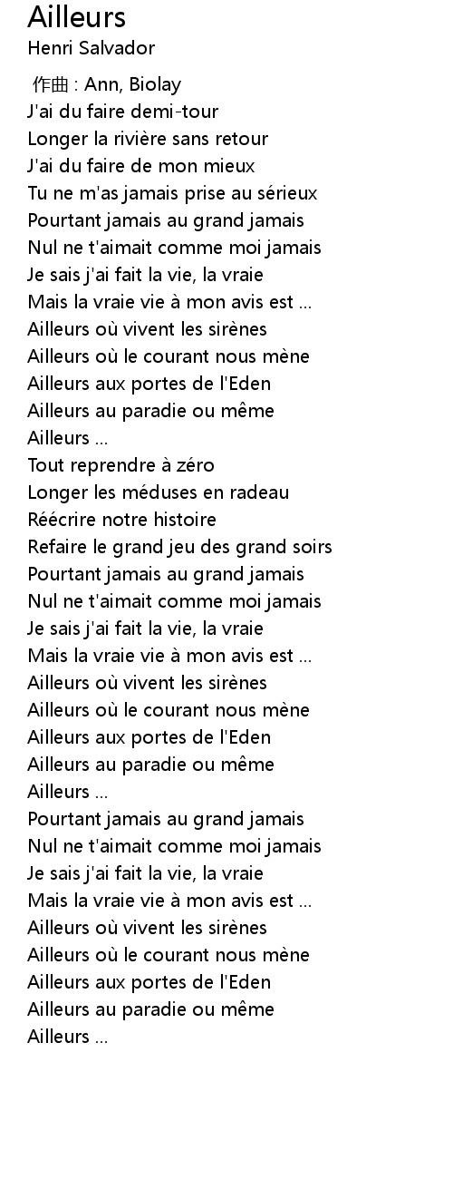 | [03:34.72] | Ailleurs où vivent les sirènes |