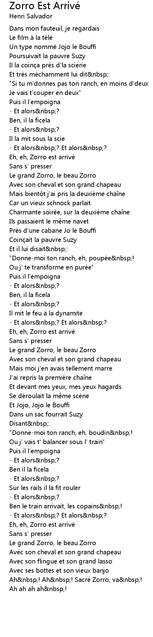 | Song | Zorro Est Arrivé |