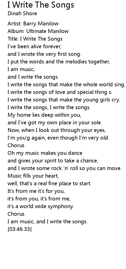 Title: I Write The Songs |