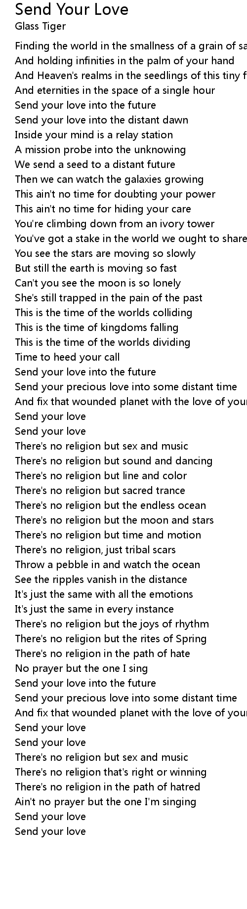 Send your precious love into some distant time |