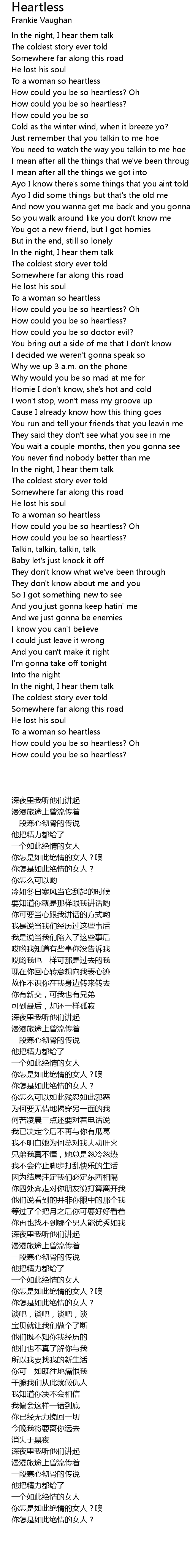 To a woman so heartless |