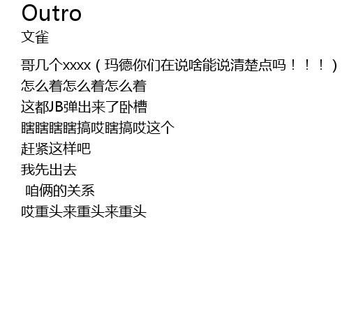 | [00:35.00] | 哥几个xxxx(玛德你们在说啥能说清楚点吗!!!) |