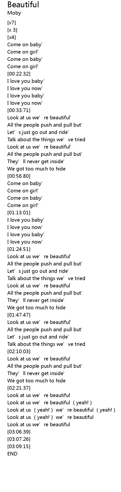| [02:44.29] | Look at us (yeah!) we’re beautiful (yeah!) |