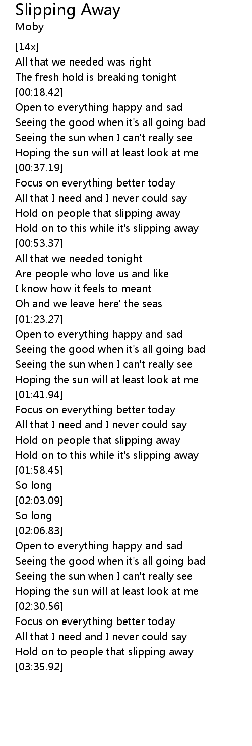 | [00:45.82] | Hold on people that slipping away |