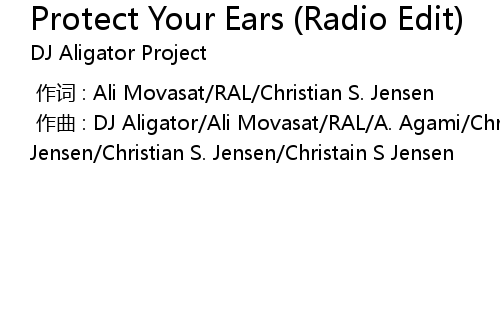 | [00:00.000] | 作曲 : DJ Aligator/Ali Movasat/RAL/A. Agami/Christian S Jensen/Christian S. Jensen/Christain S Jensen |