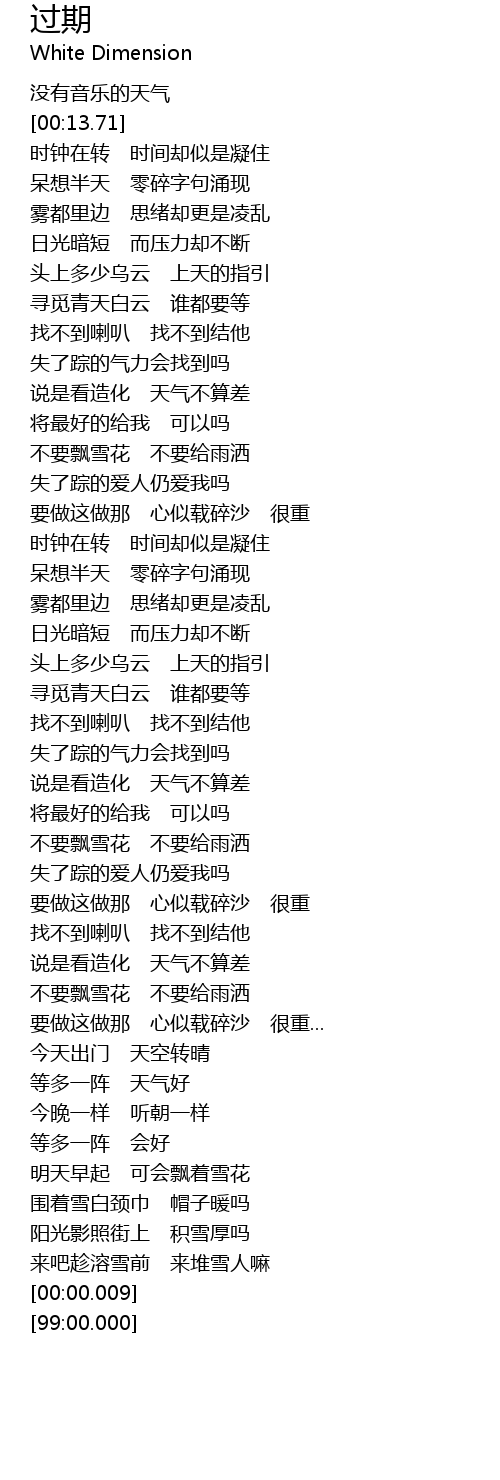 | [00:00.00] | méi yǒu yīn yuè de tiān qì |