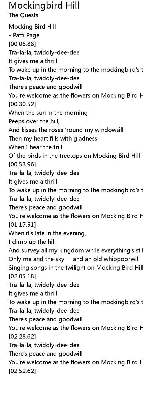 Of the birds in the treetops on Mocking Bird Hill |