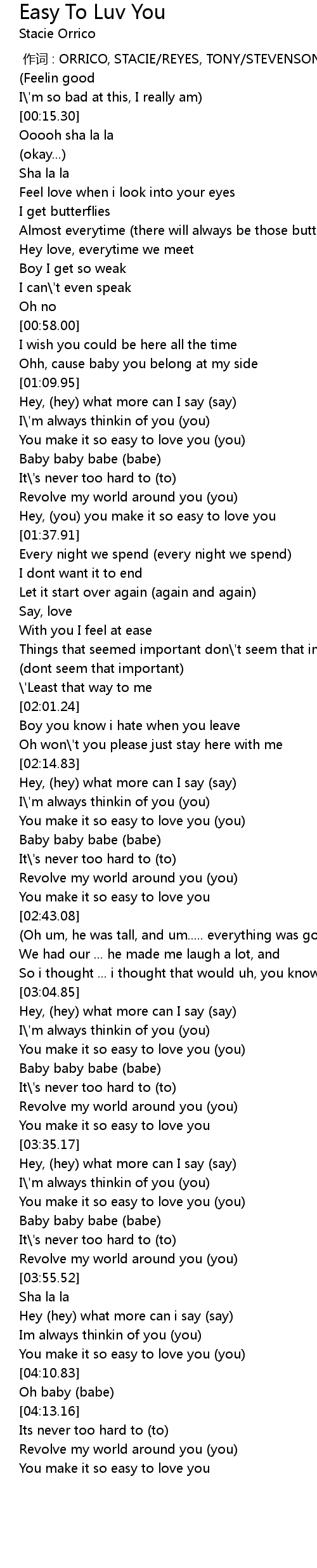 | [00:00.00] | 作词 : ORRICO, STACIE/REYES, TONY/STEVENSON, ALONZO MARIO |