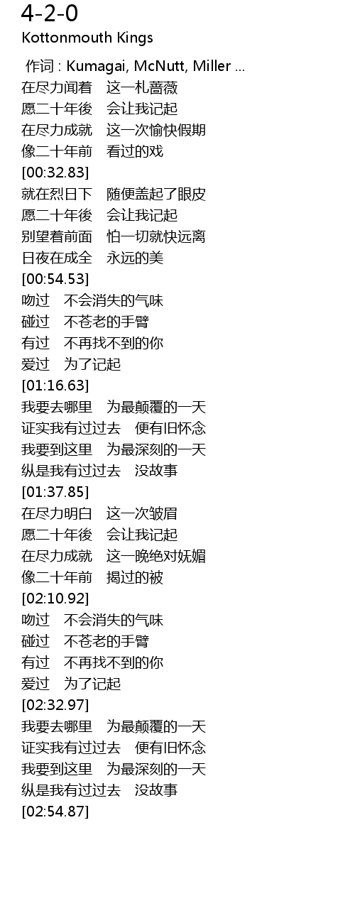 | [00:00.00] | 作词 : Kumagai, McNutt, Miller ... |