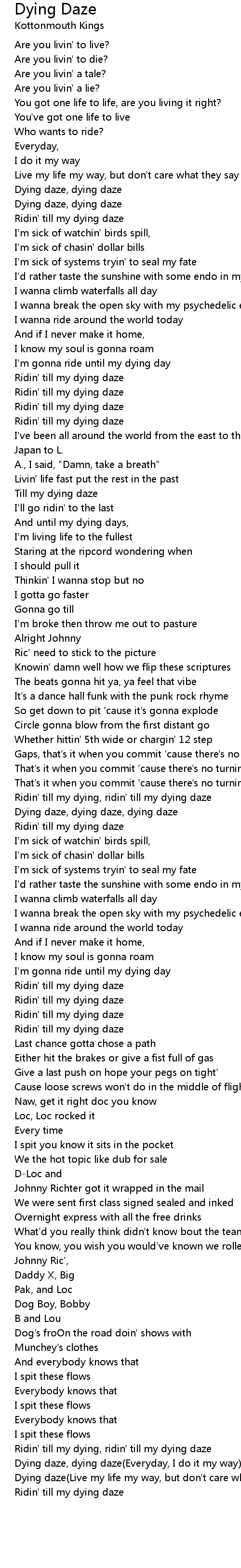 Dying daze(Live my life my way, but don't care what they say) |