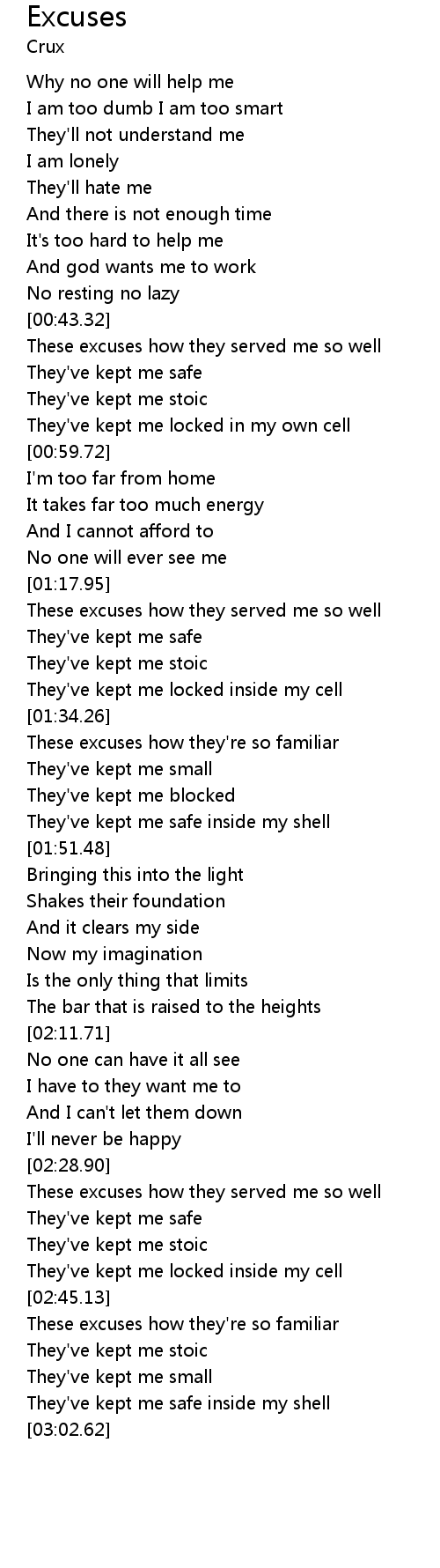 These excuses how they're so familiar |
