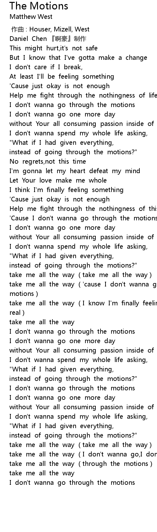 | [01:31.39] | ' Cause I don' t wanna go through the motions |