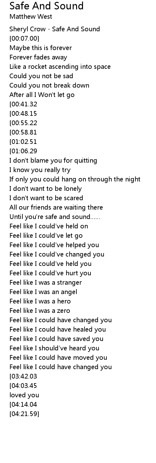| [00:00.00] | Sheryl Crow Safe And Sound |