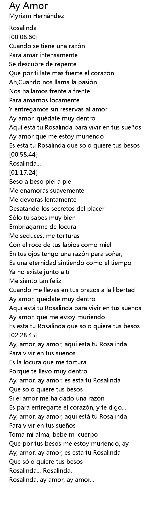 | [02:38.15] | Ay, amor, ay amor, aqui esta tu Rosalinda |
