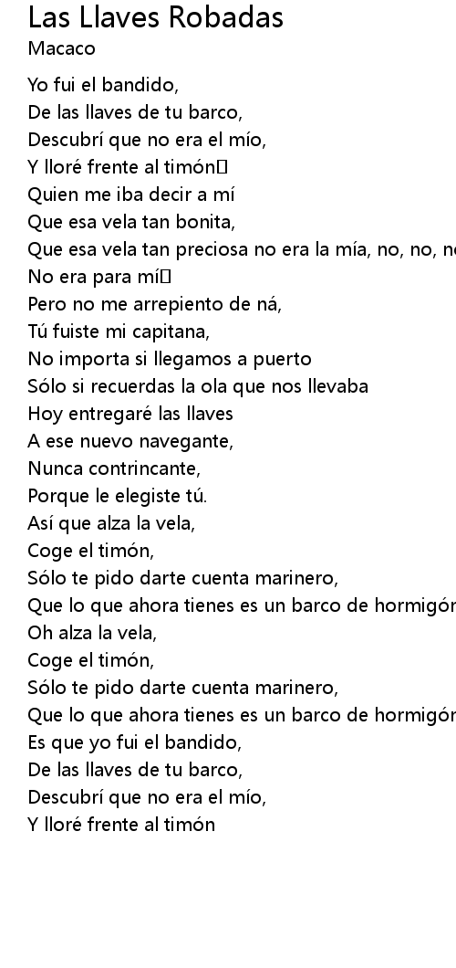 | Song | Las Llaves Robadas |