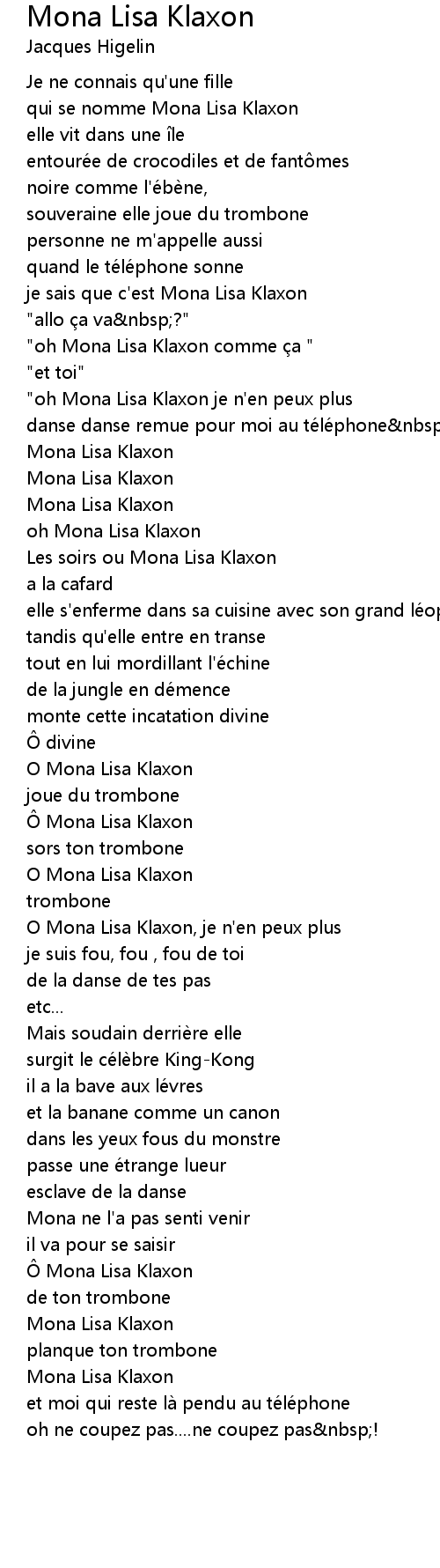 | "oh Mona Lisa Klaxon comme ça " | |