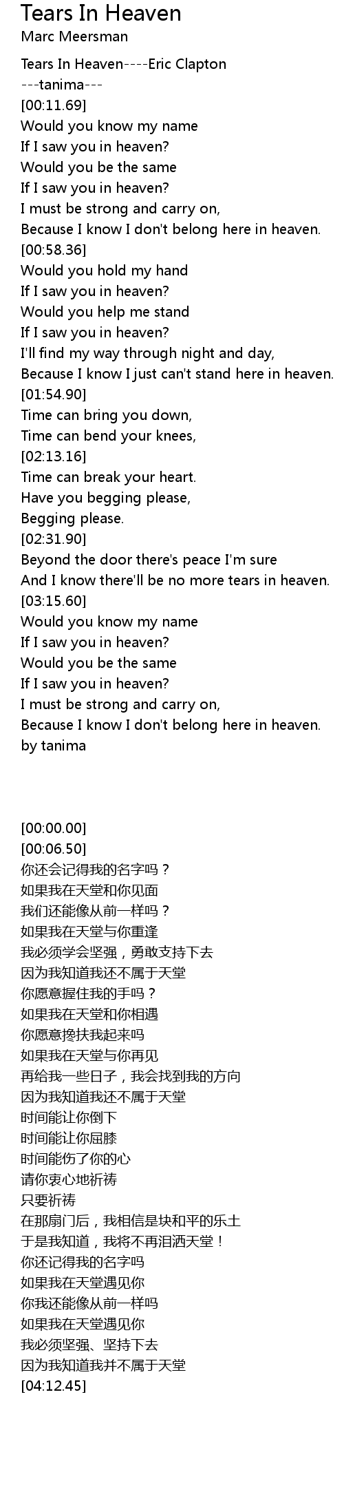 And I know there'll be no more tears in heaven. |