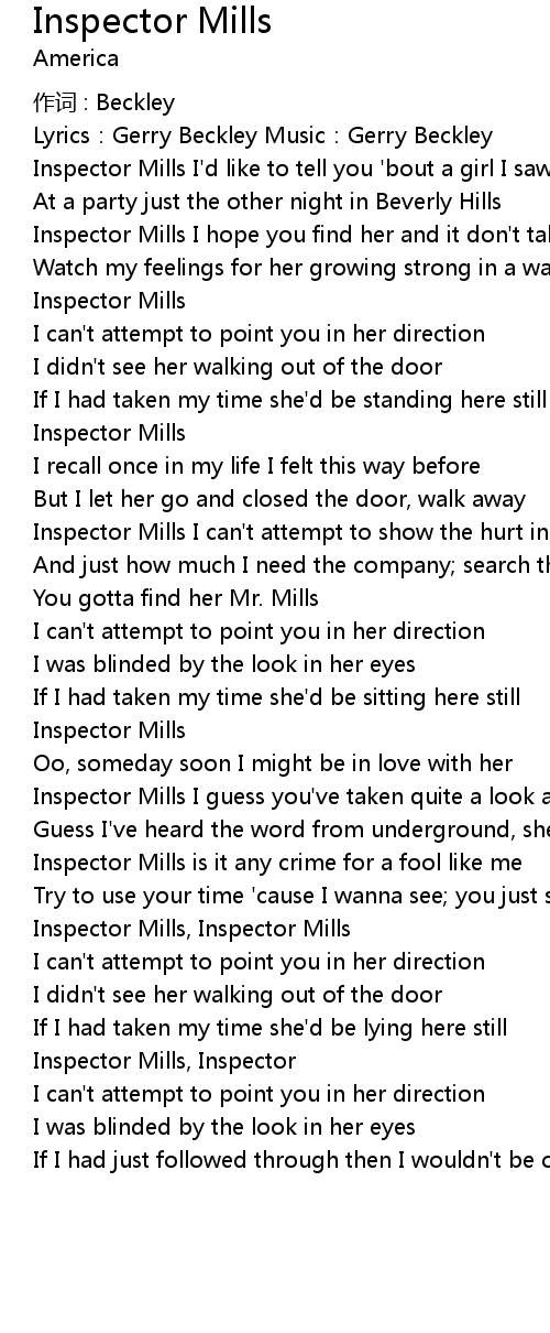 | Inspector Mills I' d like to tell you ' bout a girl I saw | |