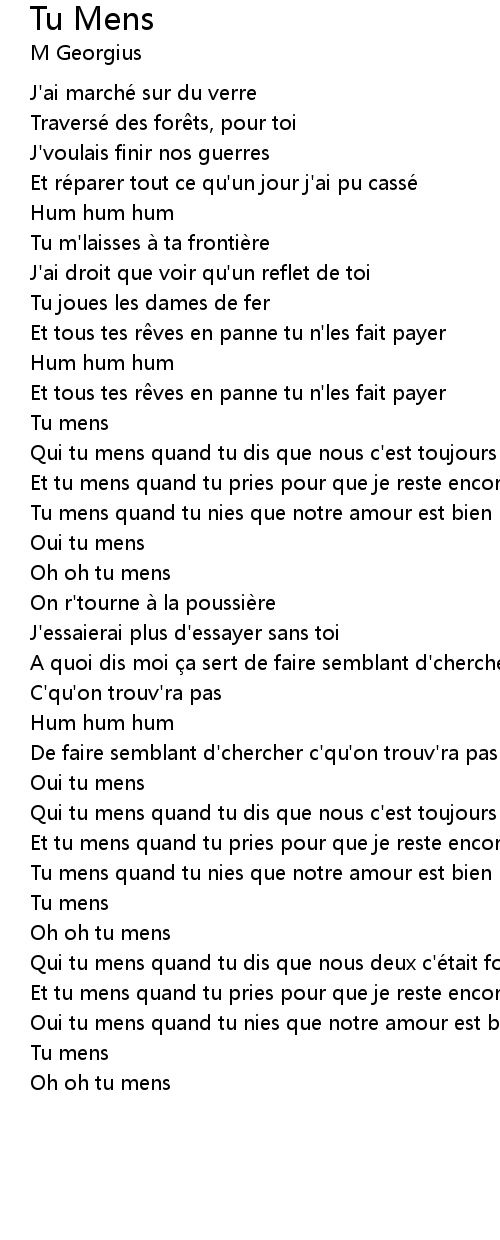 | Tu mens quand tu nies que notre amour est bien mort | |