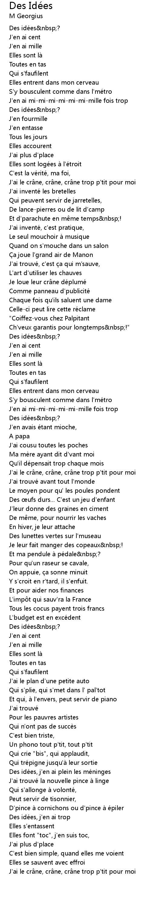 | Des ide es, j' en ai trop | |
